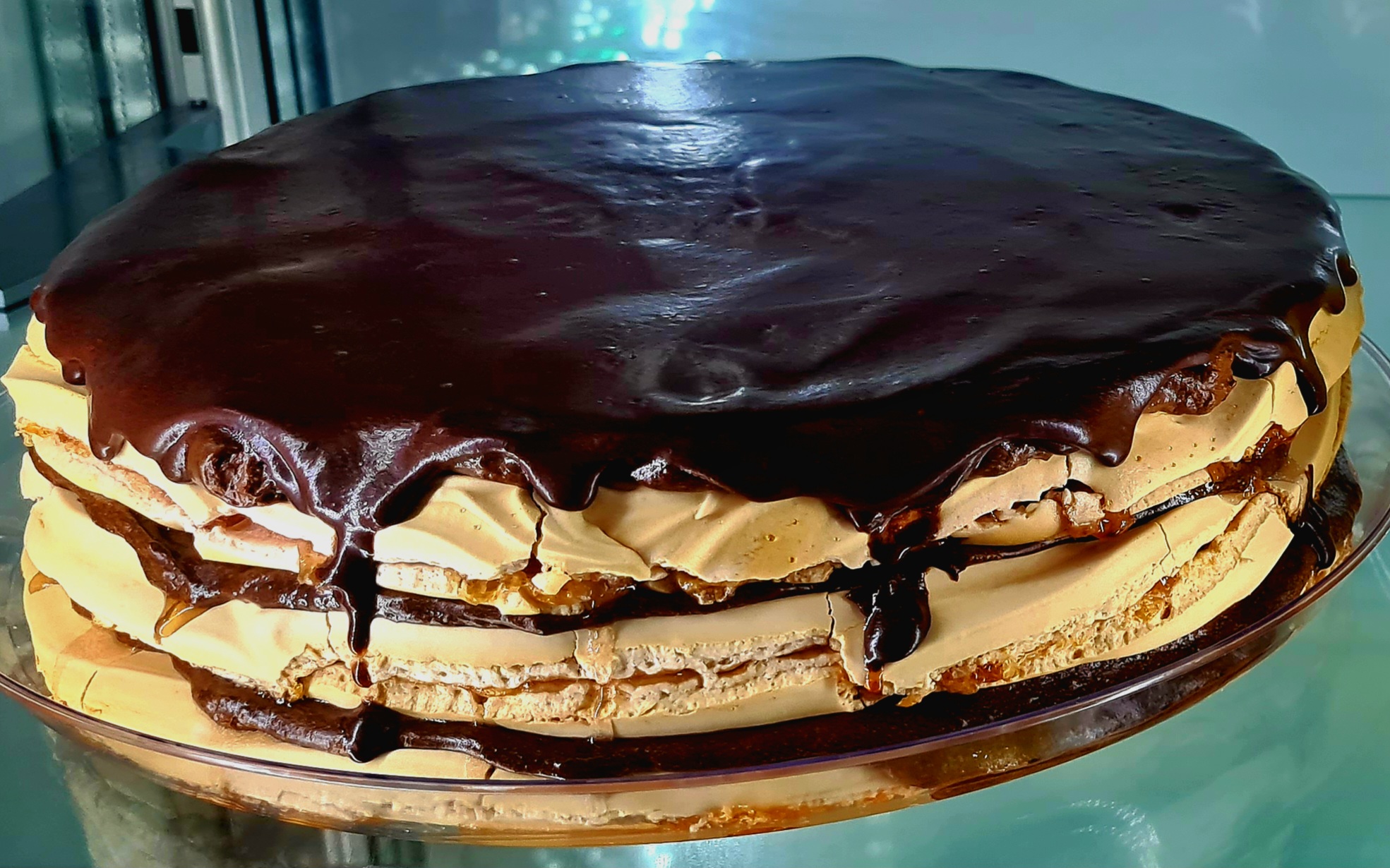 Delicioso bolo de Suspiro com recheio em camadas de chocolate