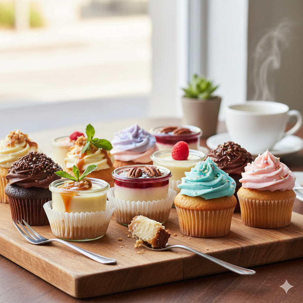 Pequenas obras de arte para saborear! Quem resiste ao charme de um bolo em miniatura, coroado com as coberturas mais criativas e saborosas? Os nossos Cupcakes são a prova de que a beleza também se come: massa fofinha, recheios surpreendentes e um visual que encanta antes mesmo da primeira dentada. Ideais para celebrar os pequenos sucessos do dia a dia ou para dar cor a qualquer evento. Escolha o seu design favorito e deixe-se conquistar!